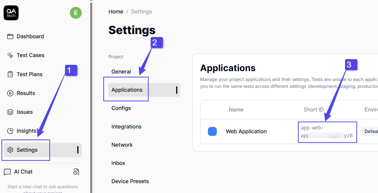The project ID is found in Applications under Settings. Copy the ID of the application you want to target.