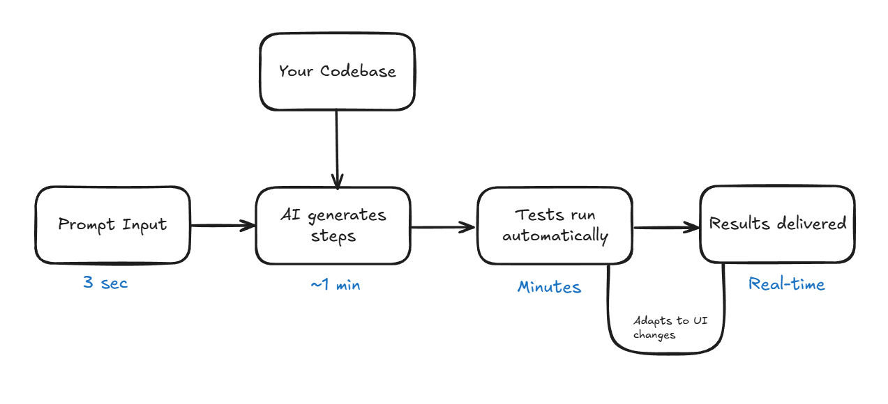 The whole process of adding AI into your existing QA workflow is simple: define a few key user journeys you want to test, integrate the AI agent with your CI/CD pipeline, and let it start observing your application. Most teams see their first tests up and running within a single day.