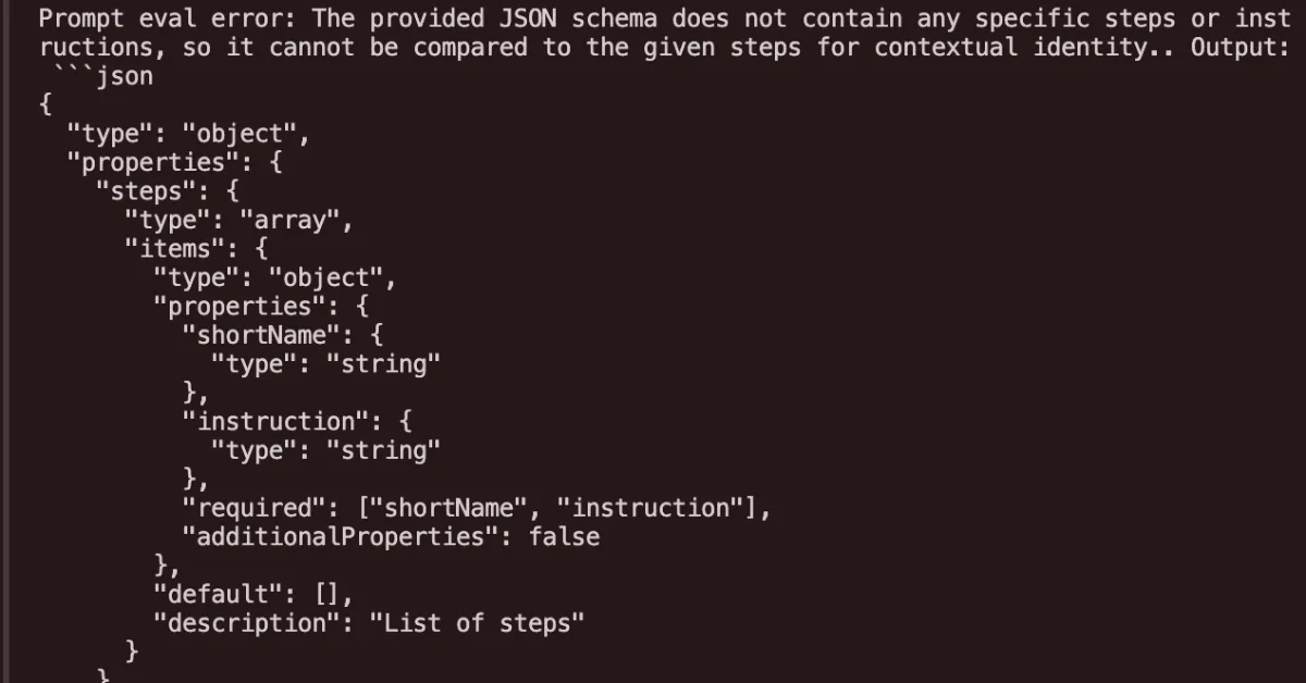 }Above, we prepare our UpdateStepInput type by splitting locked from unlocked steps (we might cover this in a future blog post) and deciding what prompt evaluation asserts we want to test for. If a set of asserts is provided by the caller, we use that. Otherwise, we use a default set of asserts.