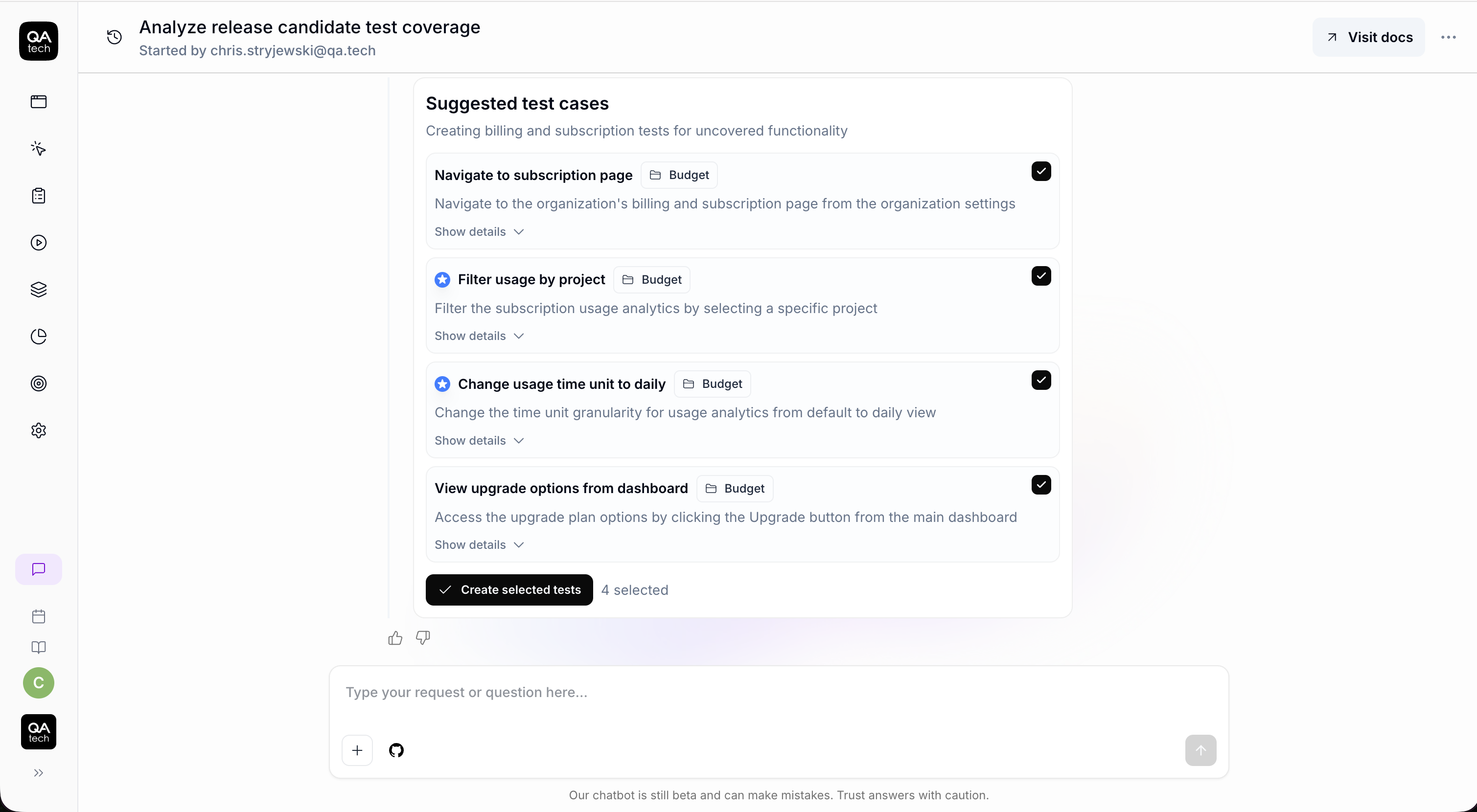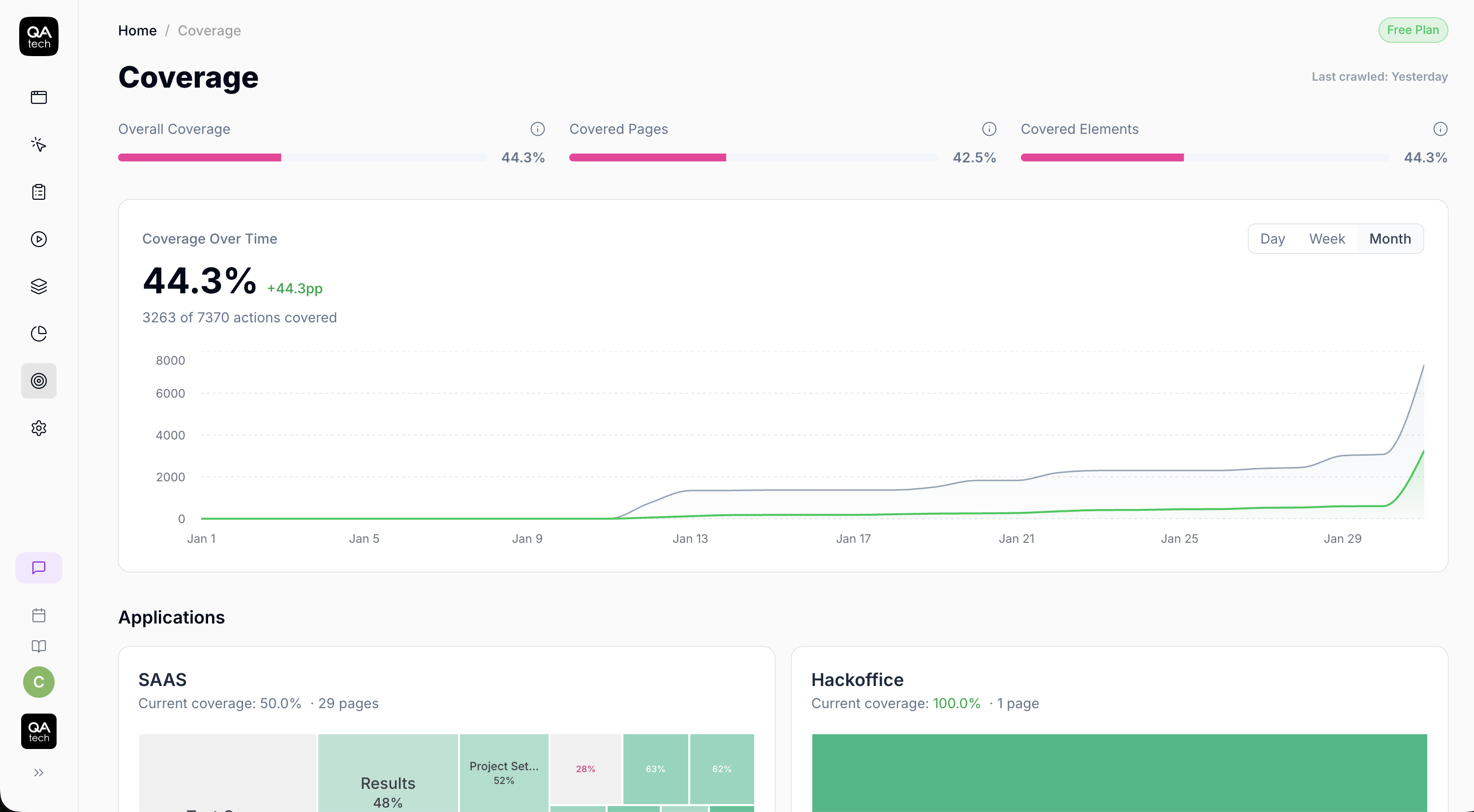 Plus, you can use QA. tech to monitor coverage, not for individual test cases, but for user actions.