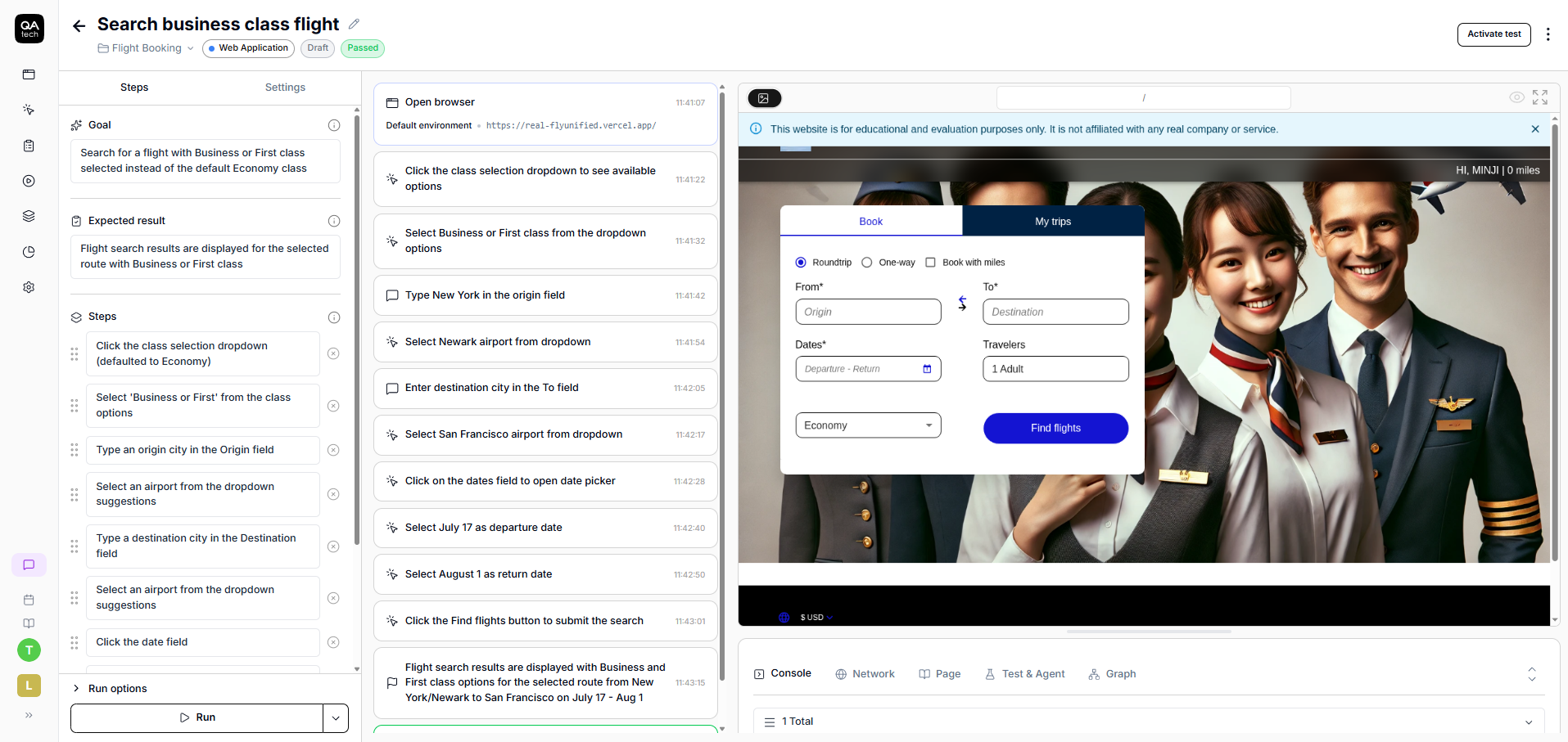 And that’s where QA.tech comes in. It does not generate scripts that say “click on this specific element and check the specific DOM node.” It mimics how real users interact with your application and builds a structural understanding of what matters.