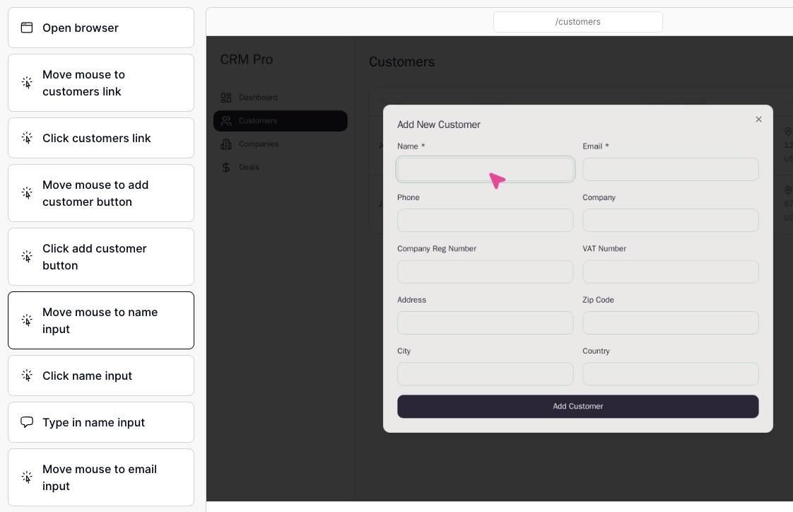 - Live Mouse Tracking: See the exact path of the mouse during test execution.