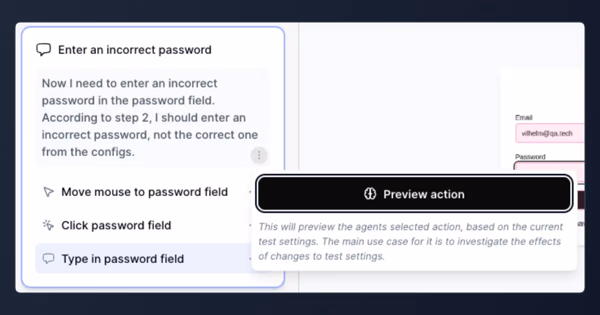 - If the AI agent clicks the wrong button or takes an unintended action, simply update your test instructions.