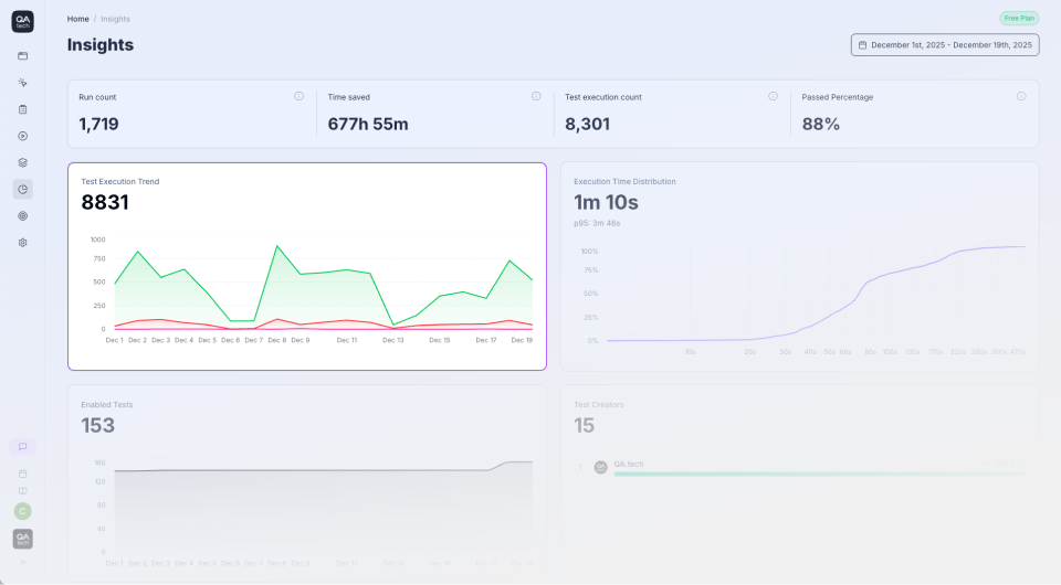 AI agents record each step of a test, giving developers full context and logs to debug faster.