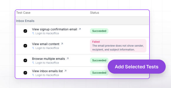 UI changes shouldn’t break your test suite. AI agents understand the intent of a test, not just selectors. When flows change, tests adapt to reach the same goal.