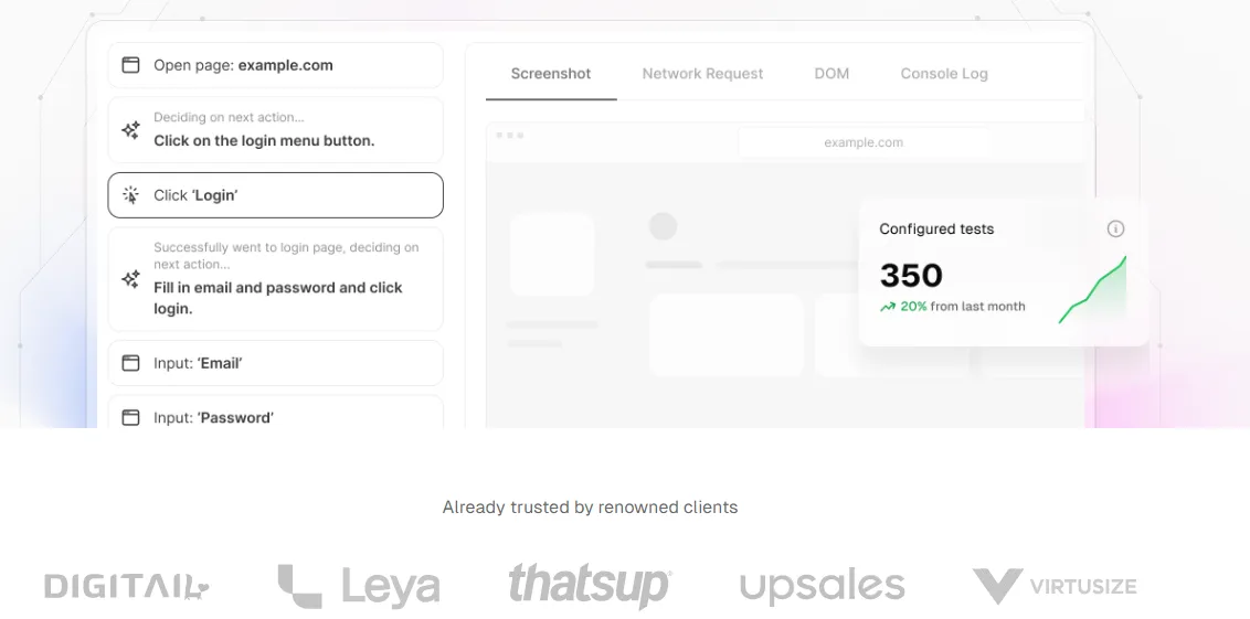 QA.tech is an AI-powered test automation solution for B2B and SaaS platforms. This user-friendly and intuitive solution is specially built to improve the quality of web applications and browsers for B2B and SaaS companies. QA.tech allows quality assurance teams to focus on strategic activities rather than complex script writing.