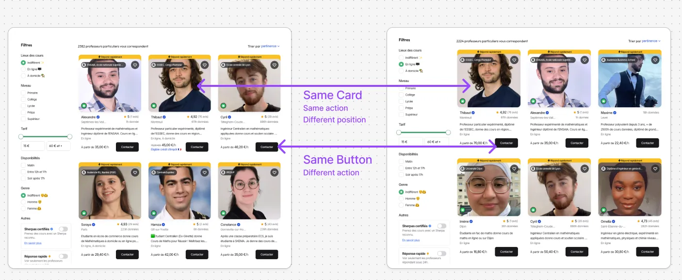 Take a look at this listing. The UI elements repeat: each person has a similar card with a call-to-action (CTA) button. For us, identifying which button to click to book a meeting with Cyril is straightforward. However, for AI models, it’s not that simple.
