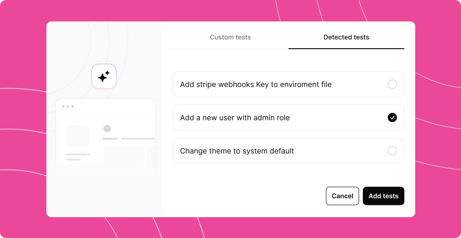 - Review & refine: Our agent will provide tests that have been detected. Feel free to review and customize it to your exact needs.